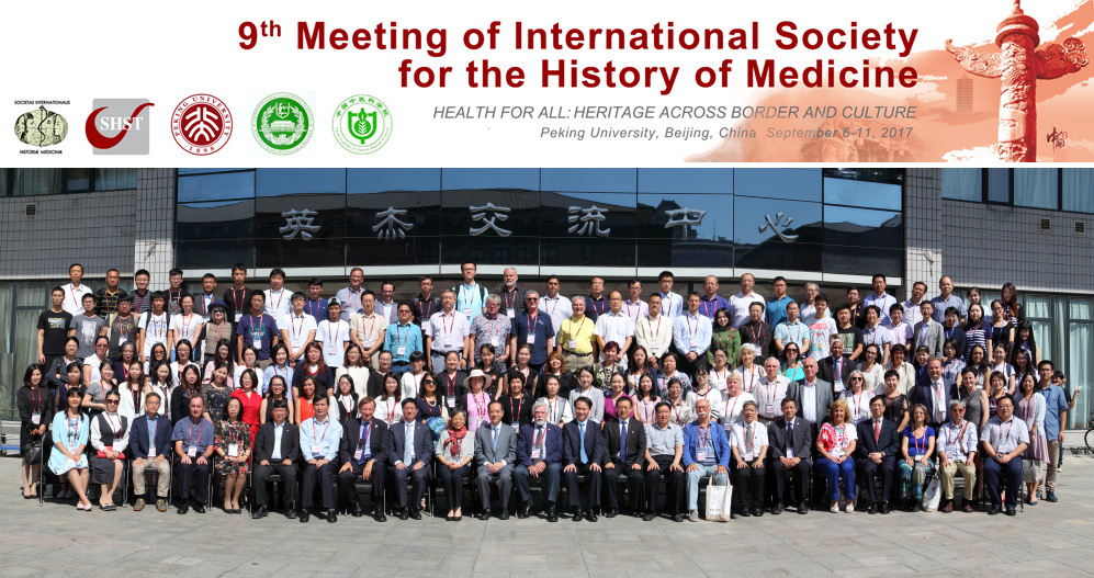 为了推动我国医学史研究的国际交流,进一步扩大中国医学史学者的国际影响力,经国际医学史学会(International Society for the History of Medicine, ISHM)批准,由国际医学史学会主办,中国科学技术史学会医学史专业委员会承办,北京大学医学部、北京协和医学院、中国中医科学院协办的国际医学史学会第九届学术会议(The 9thMeeting of International Society for the History of Medicine)于2017年9月6-11日在北京大学召开。全国政协副主席、北京大学医学史研究中心名誉主任韩启德院士担任大会主席,北京大学副校长、北京大学医学部主任詹启敏院士担任大会副主席,中国医学科学院院长、北京协和医学院校长曹雪涛院士,中国中医科学院院长张伯礼院士及国际医学史学会主席Carlos Viesca Trevino教授任大会副主席。北京大学科学史与科学哲学研究中心、医学史研究中心主任张大庆教授任大会秘书长兼副主席。